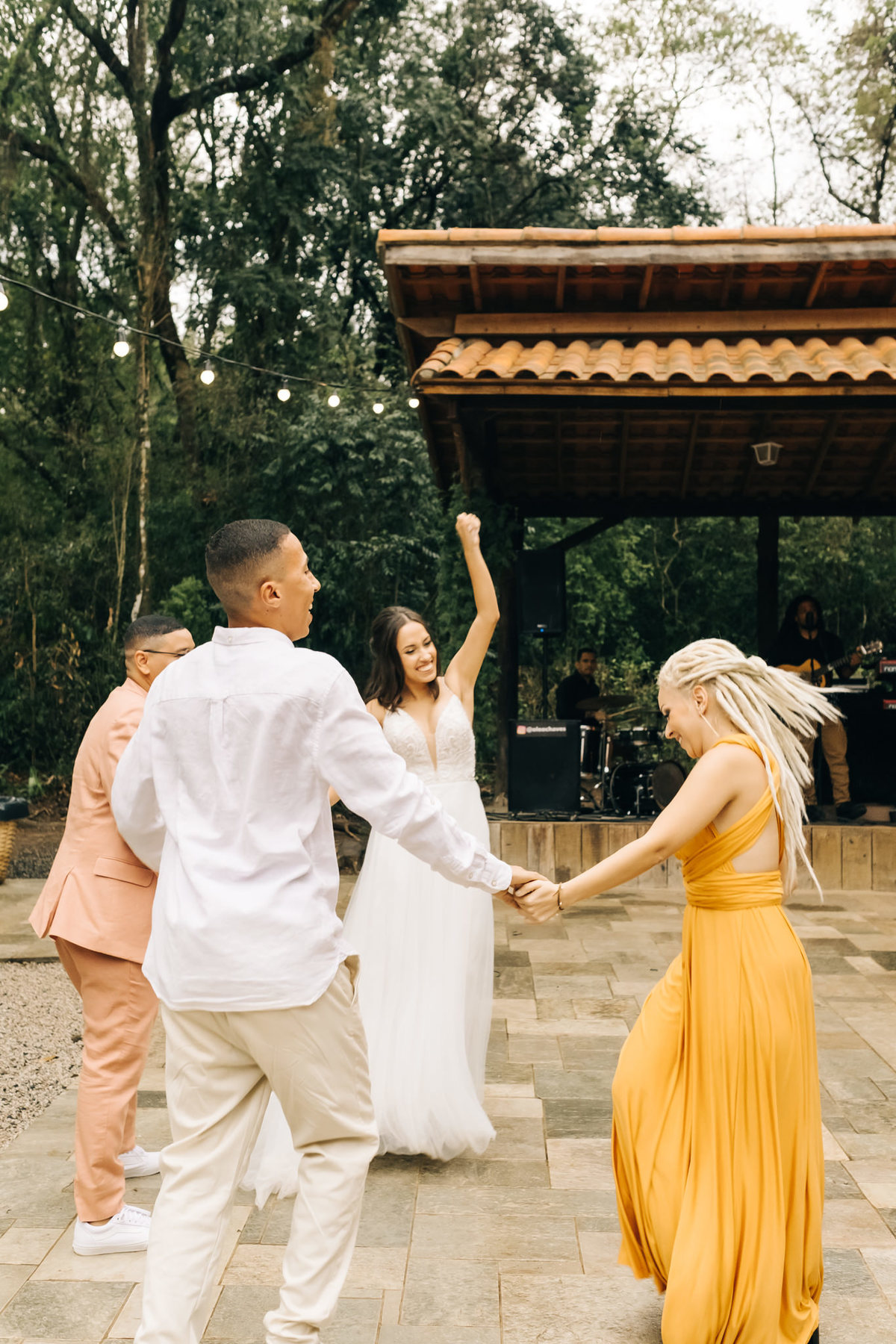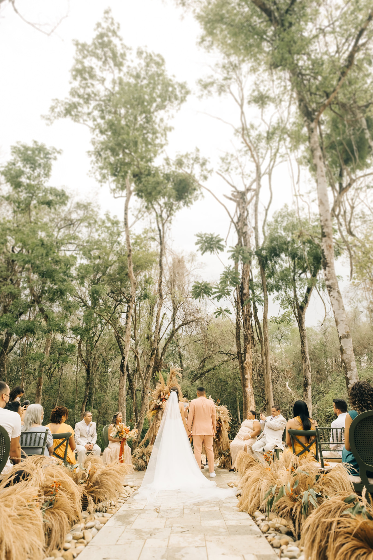 decoração de casamento boho bohemian Village Itu sp - ar livre - por do sol - Ava fotografia - terno rosa - salmão - salmon - saída dos noivos - pétalas