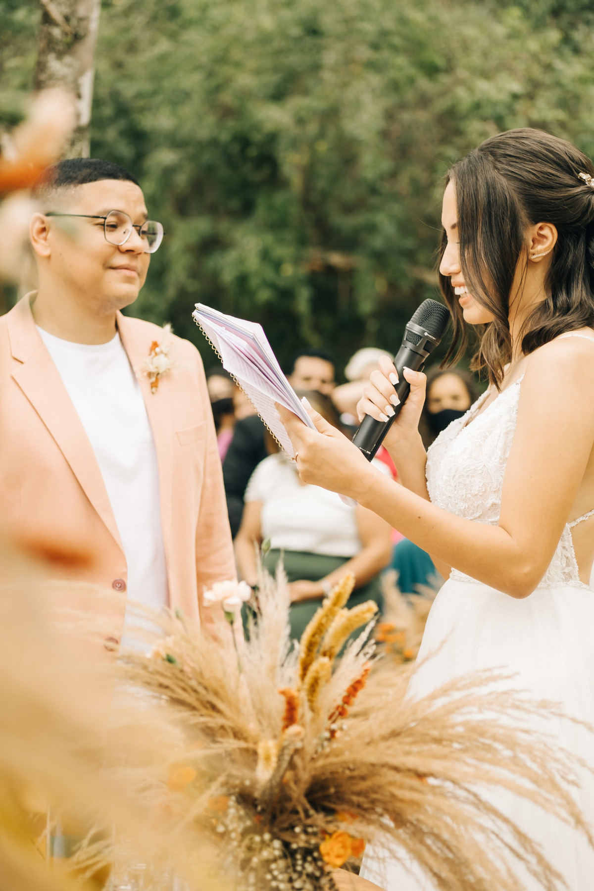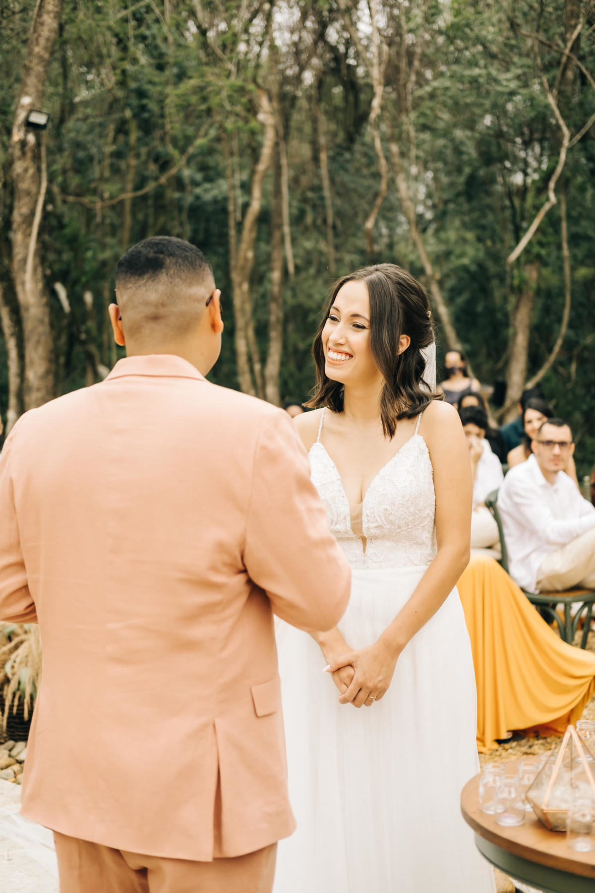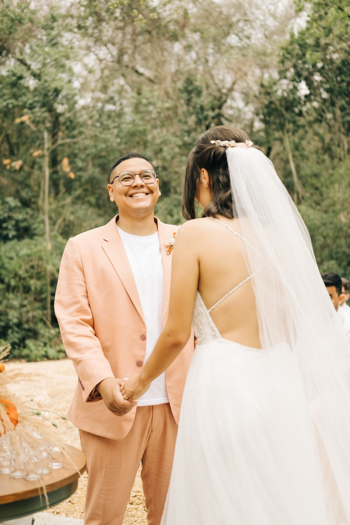 decoração de casamento boho bohemian Village Itu sp - ar livre - por do sol - Ava fotografia - terno rosa - salmão - salmon - ensaio de casal - celeiro - cerimônia das areias - troca das alianças