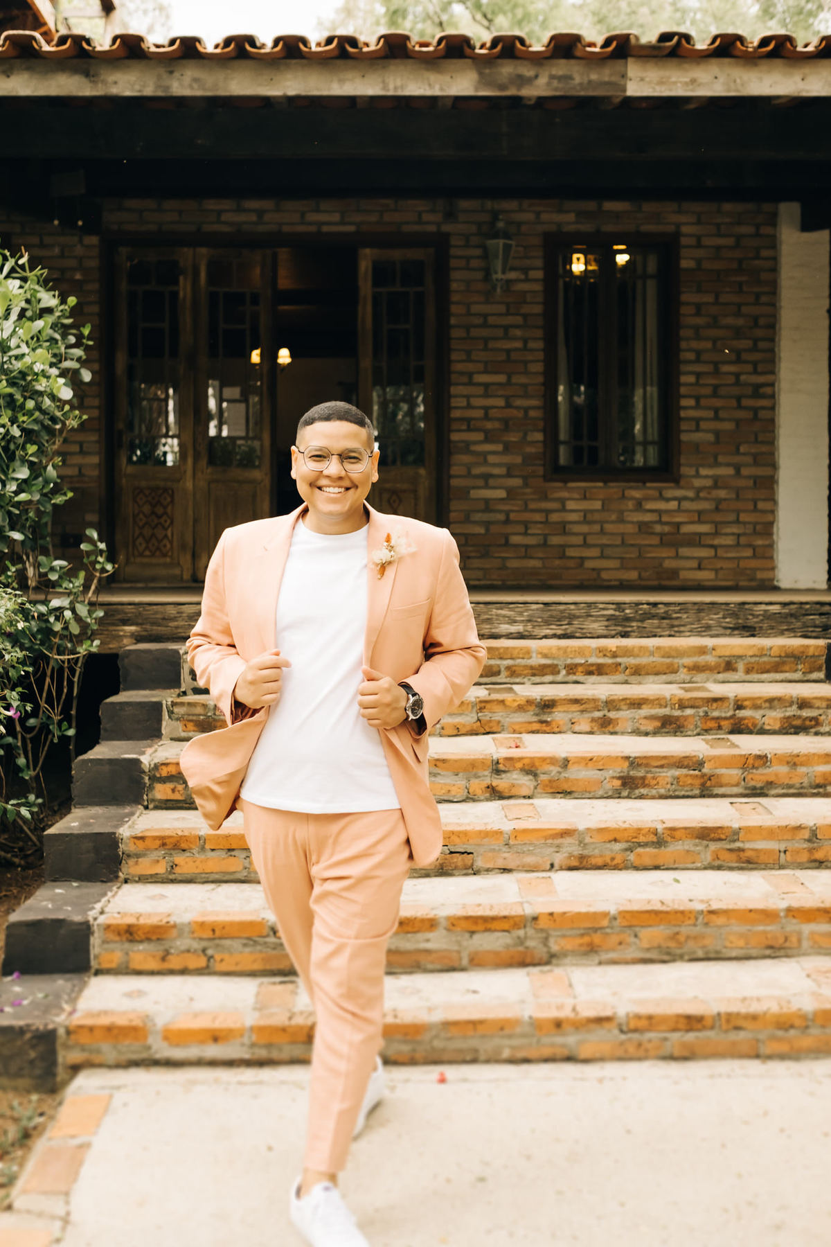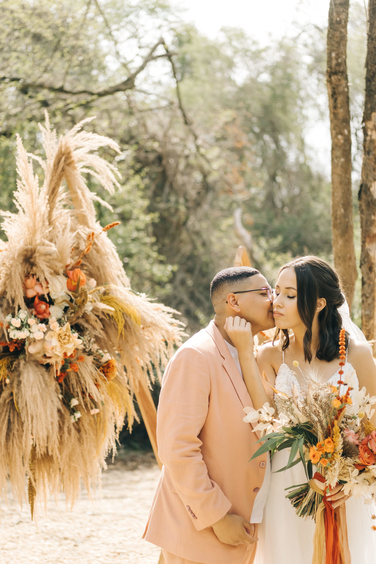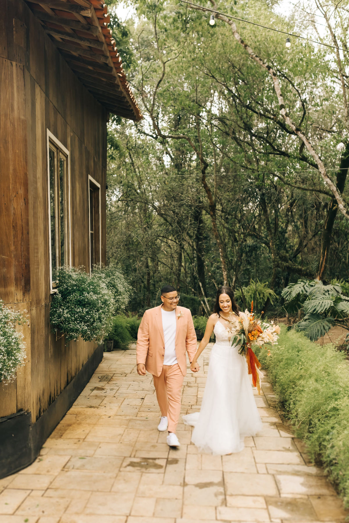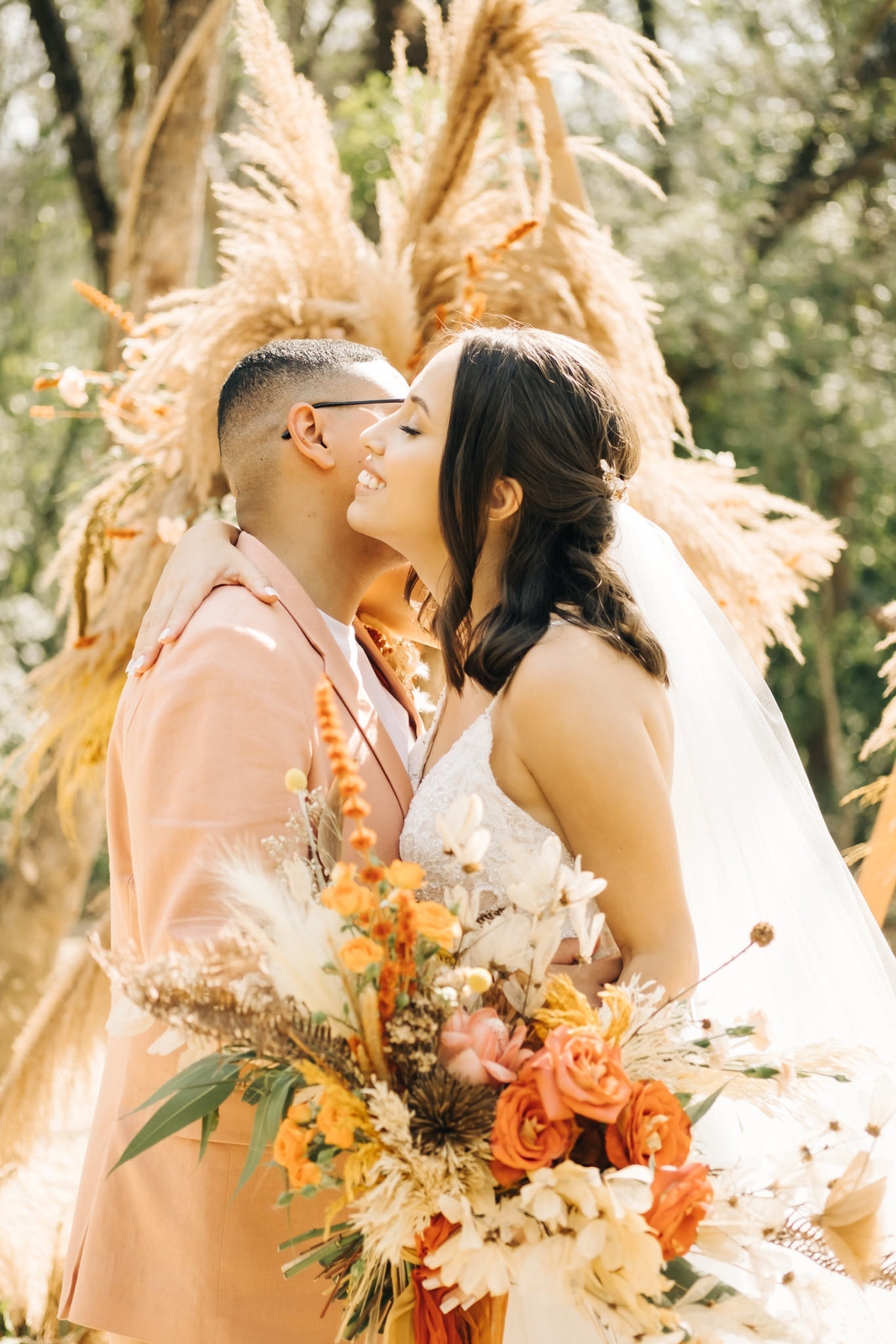 decoração de casamento boho bohemian Village Itu sp - ar livre - por do sol - Ava fotografia - terno rosa - salmão - salmon - ensaio de casal - celeiro - entrada da noiva