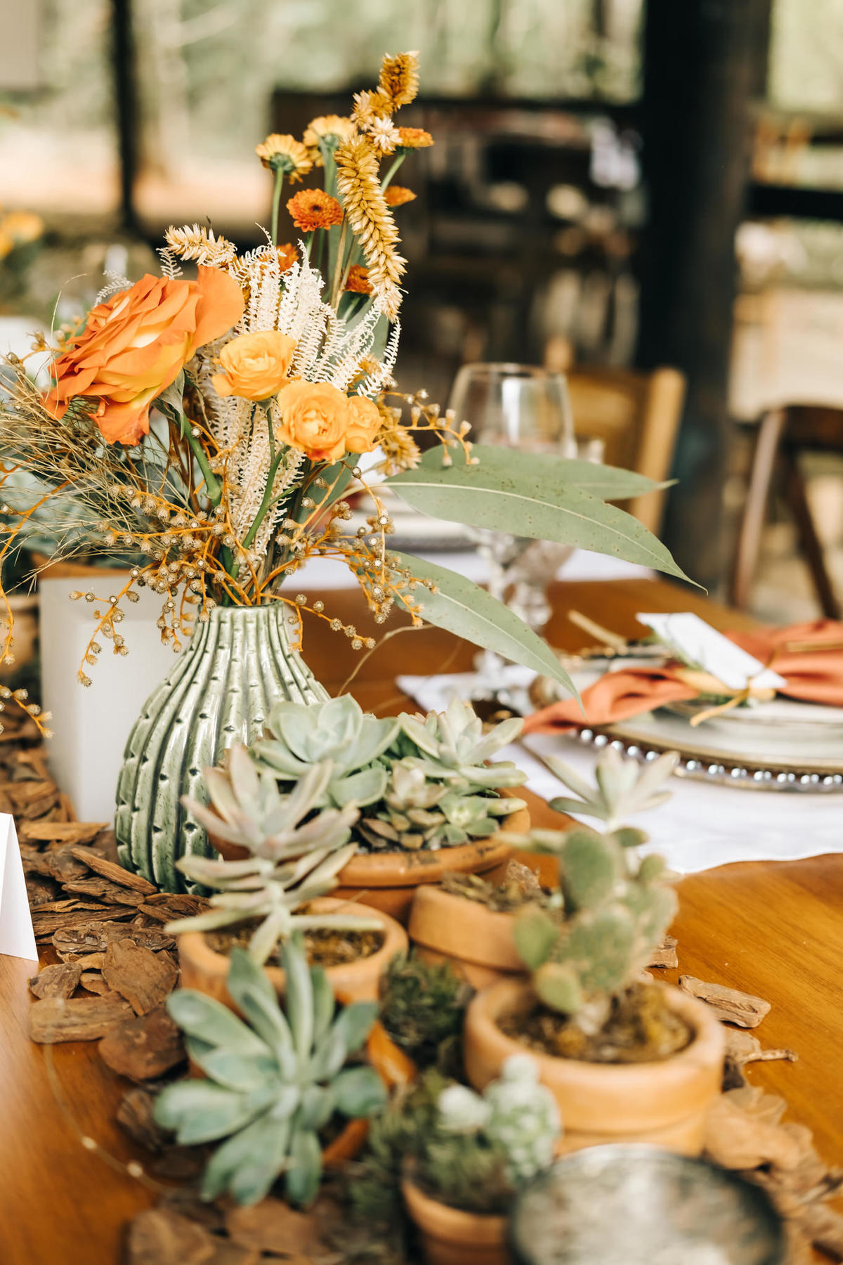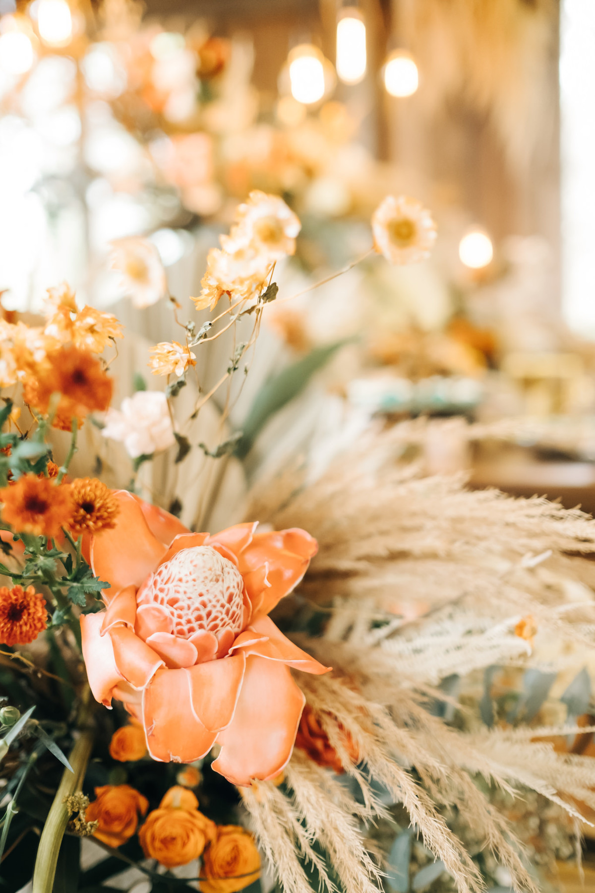 decoração de casamento boho bohemian Village Itu sp - ar livre - por do sol - Ava fotografia - terno rosa - salmão - salmon - ensaio de casal - celeiro - mesa posta