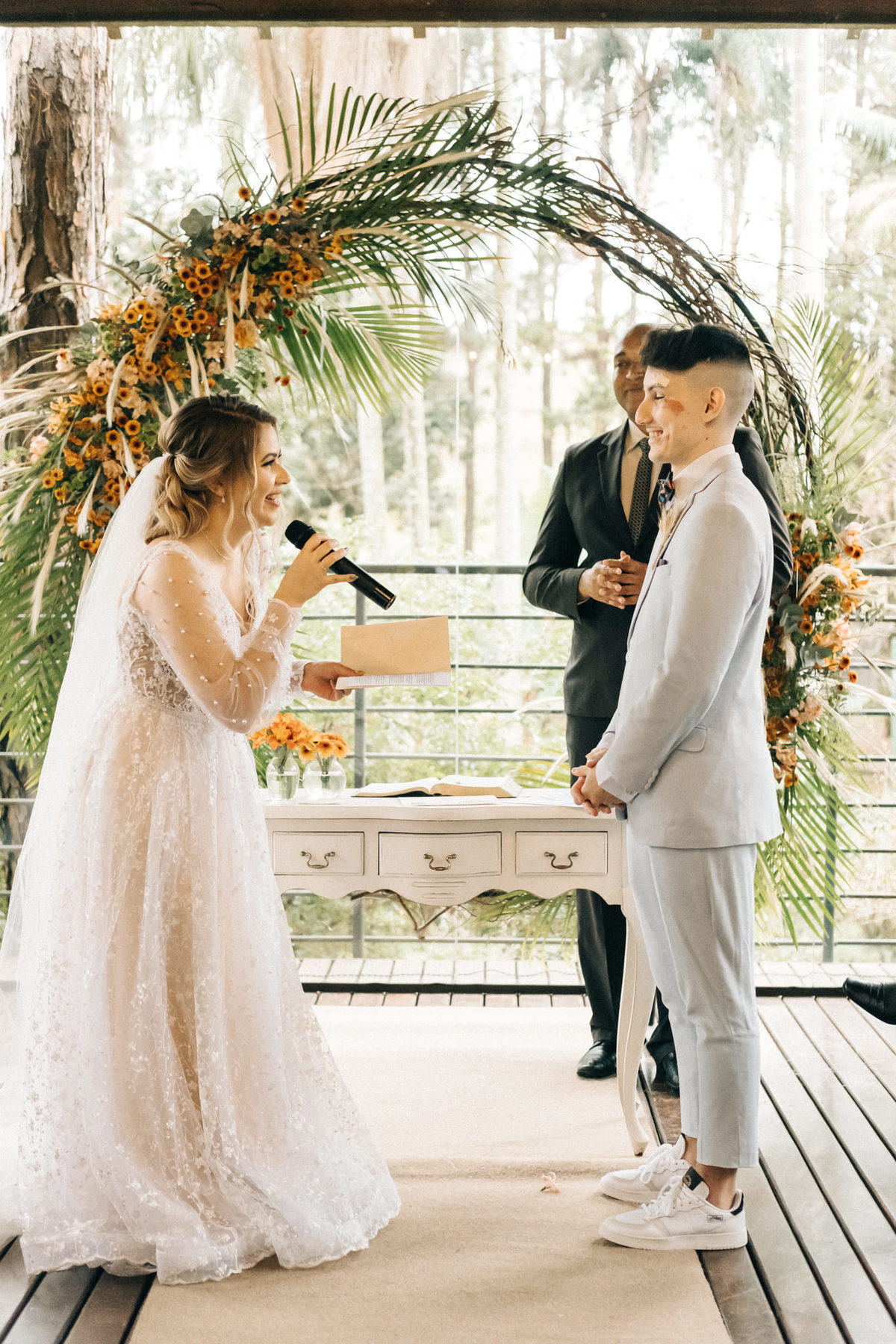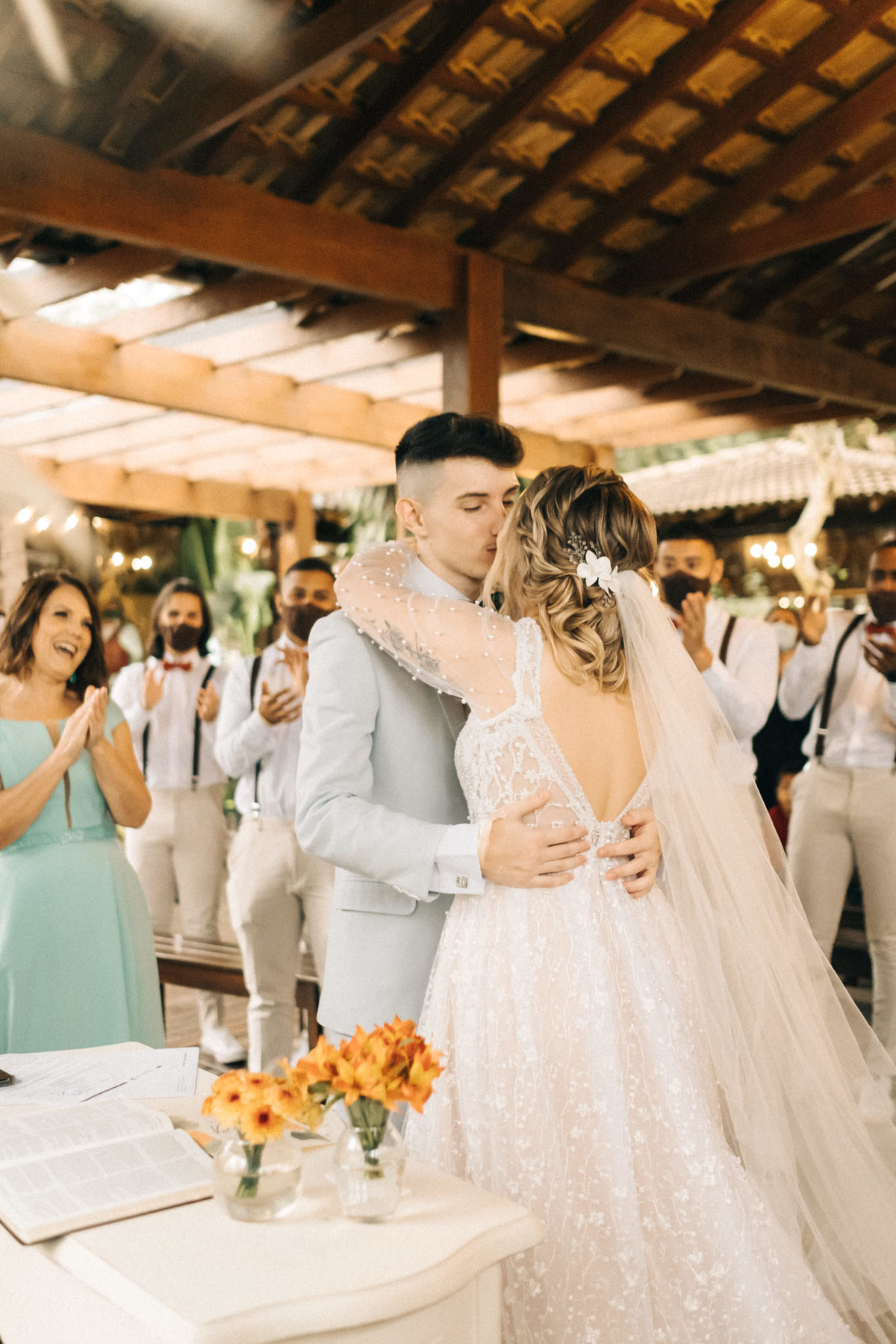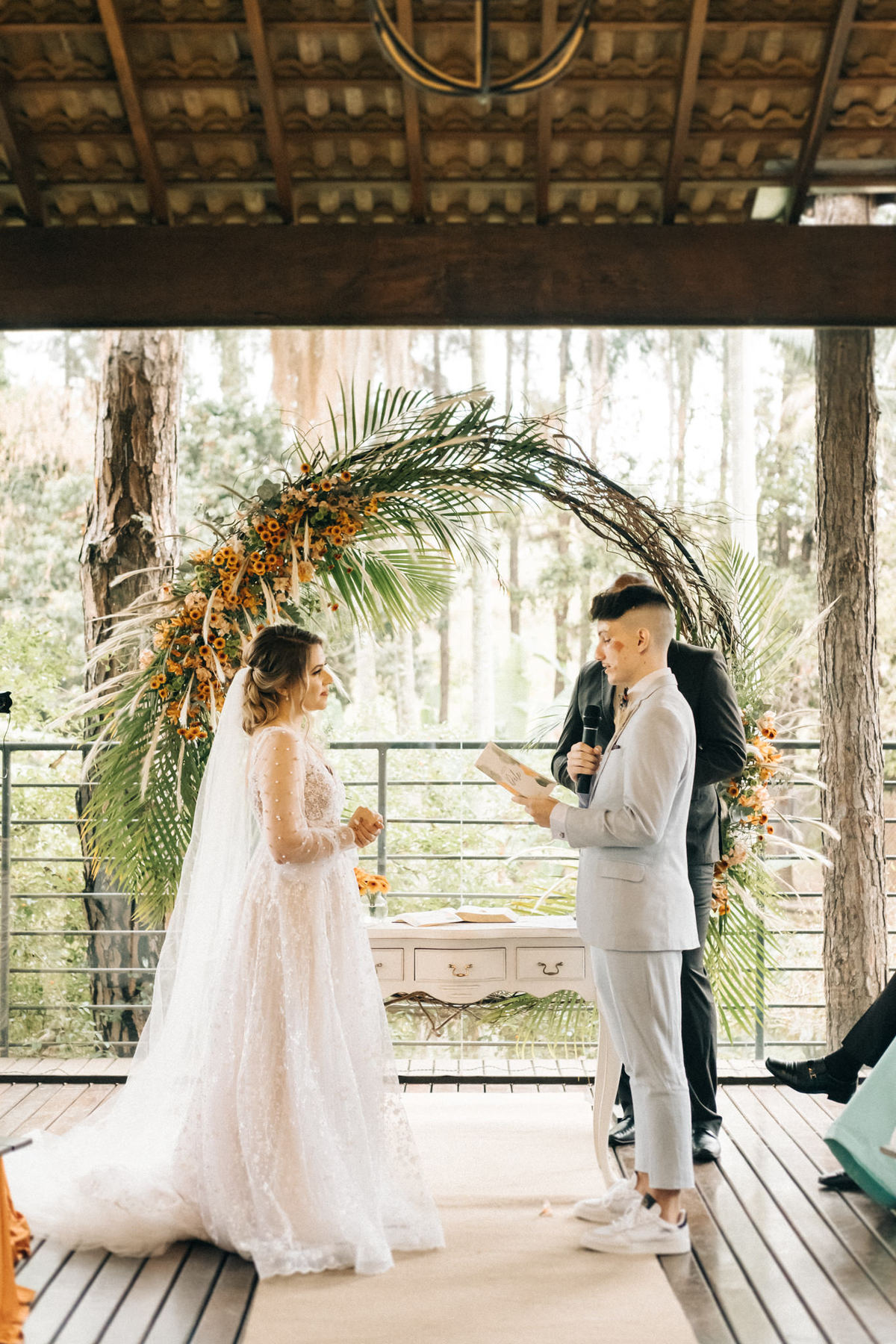 casamento diurno de dia gramado taubate sao Paulo casa giardino Mogi das Cruzes espaço verde vale alva fotografia vestido fluído por do sol Maison decorações boho ensaio de casal casamento emocionante troca de votos