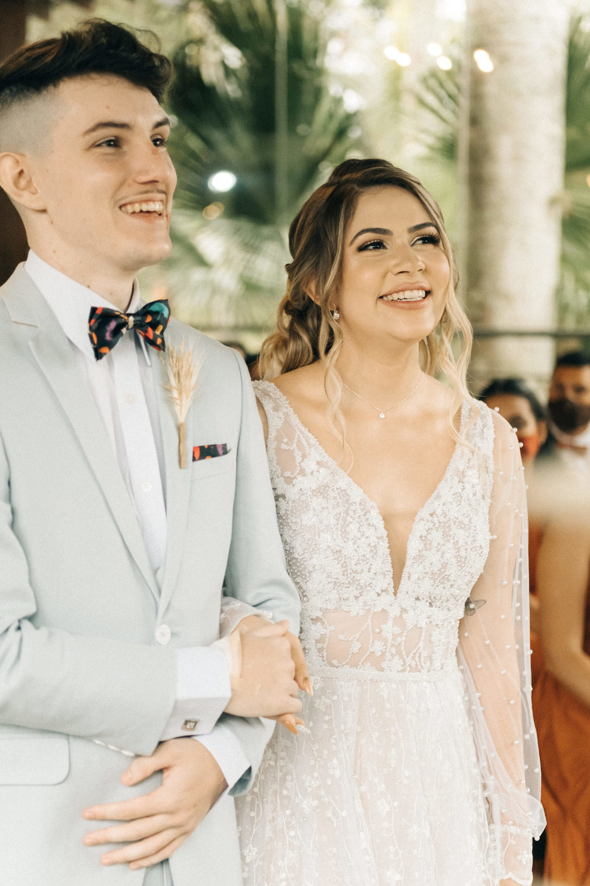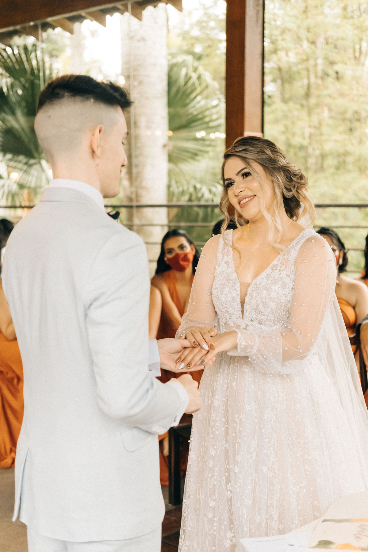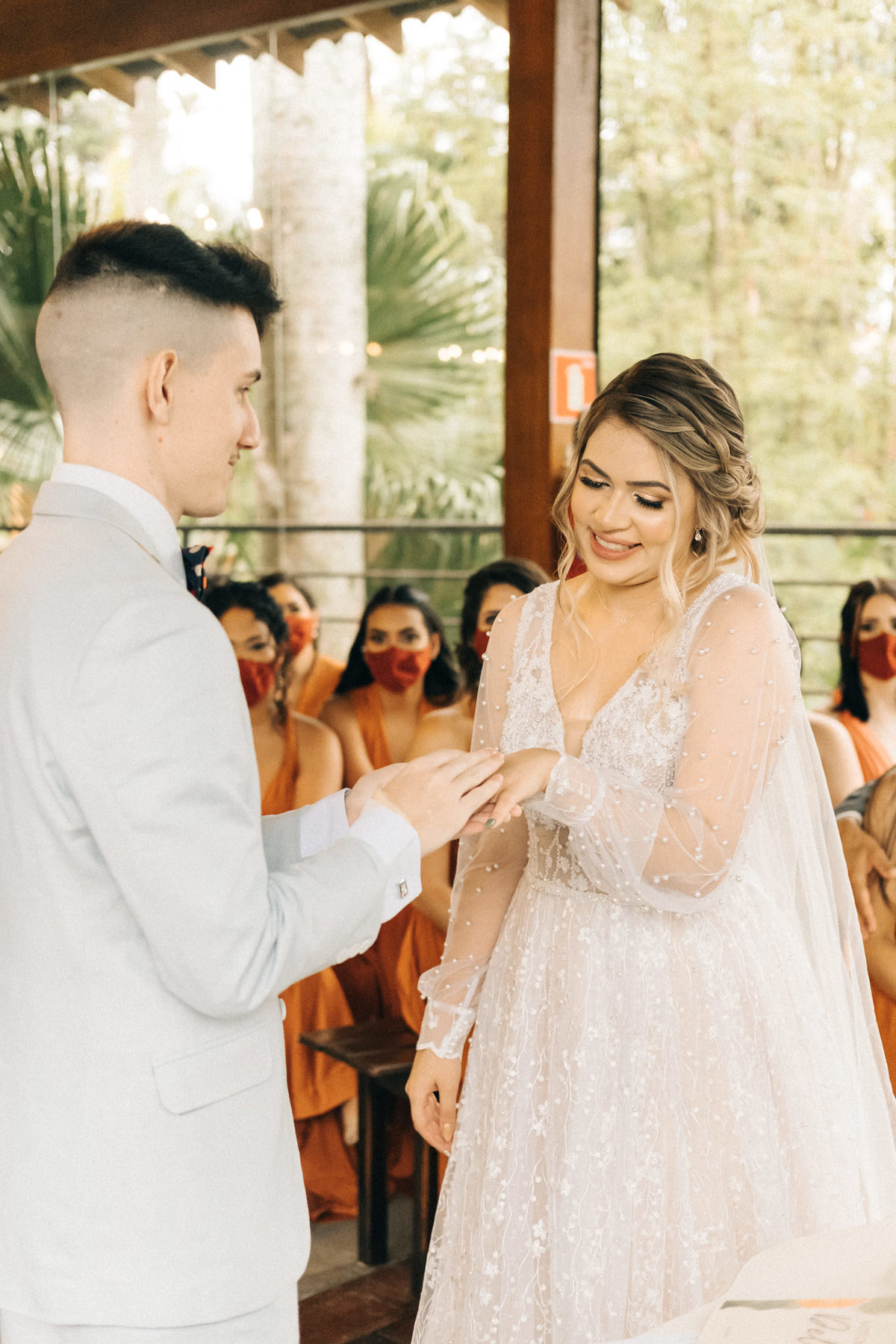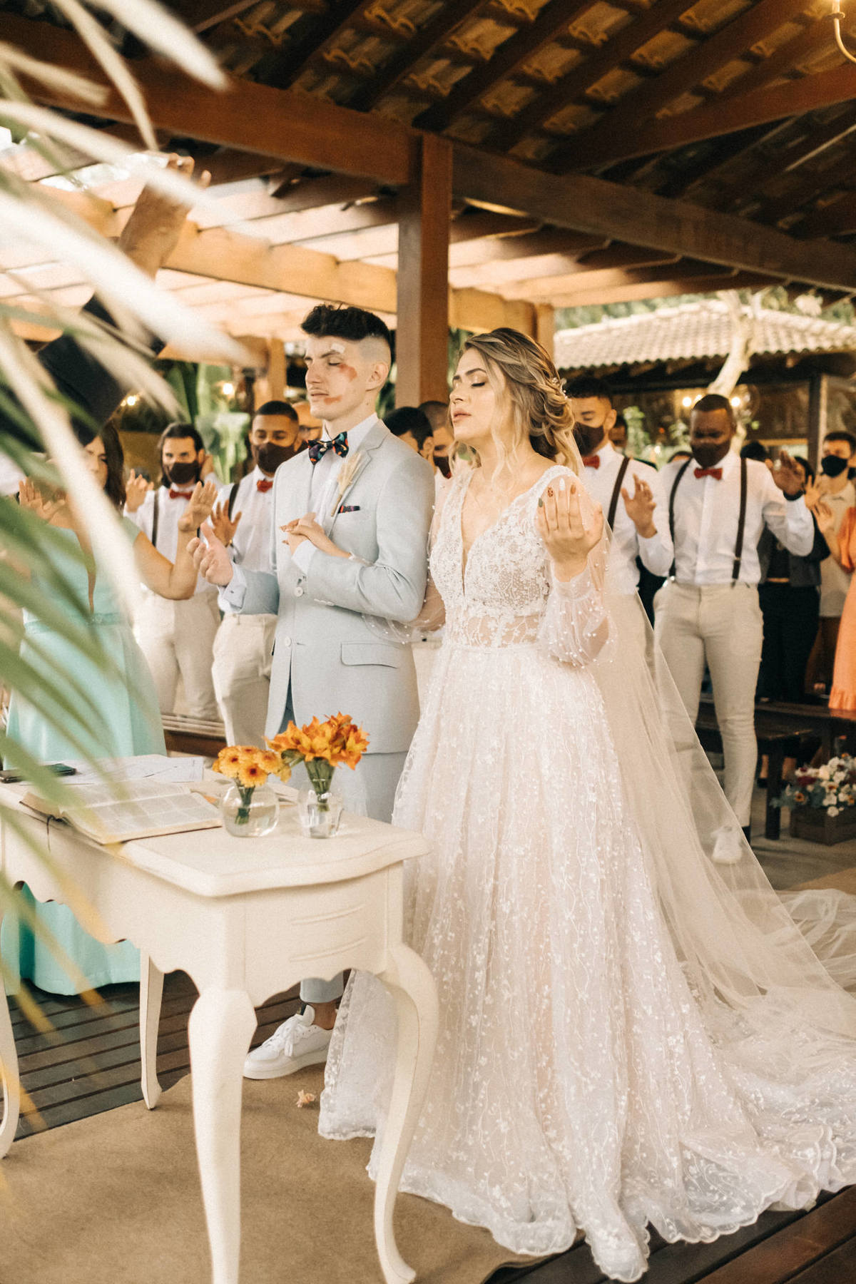 casamento diurno de dia gramado taubate sao Paulo casa giardino Mogi das Cruzes espaço verde vale alva fotografia vestido fluído por do sol Maison decorações boho ensaio de casal casamento emocionante troca de votos