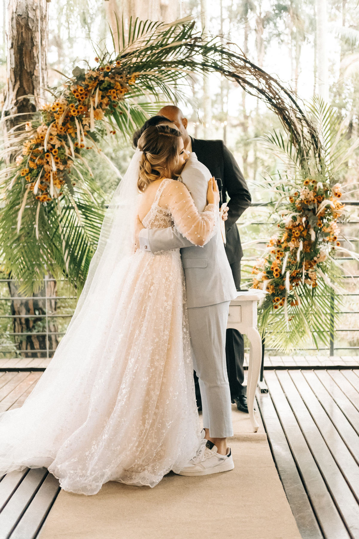 casamento diurno de dia gramado taubate sao Paulo casa gardunho espaço verde vale alva fotografia vestido fluído por do sol Maison decorações