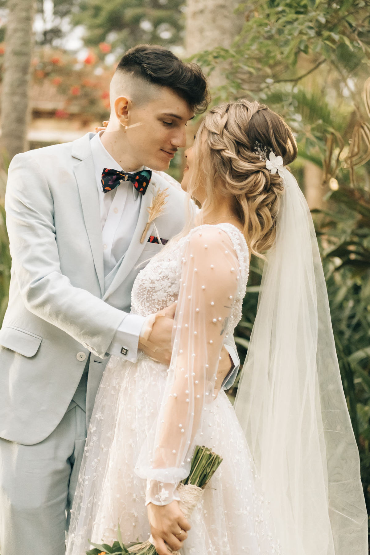 casamento diurno de dia gramado taubate sao Paulo casa gardunho espaço verde vale alva fotografia vestido fluído por do sol Maison decorações boho ensaio de casal